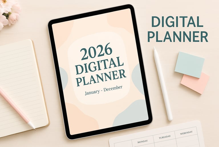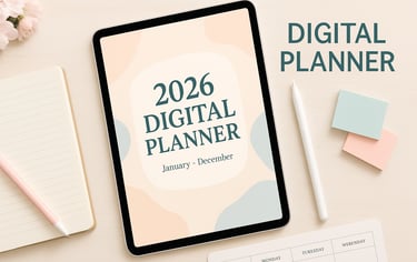 โจ Stay organized, boost productivity, and create balance in your life with our 2026 Monthly Digital Planner Collection. Designed for iPad/Tablet users with GoodNotes, Notability, or any PDF annotation app, this all-in-one planner set is your perfect digital companion for 2025 and 2026!